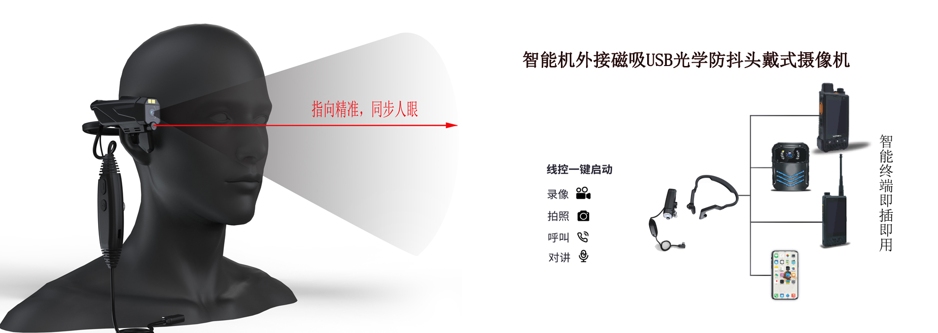 人眼視角直播工業巡檢頭戴式AI可視對講攝像攝像機(光學防抖夜視)